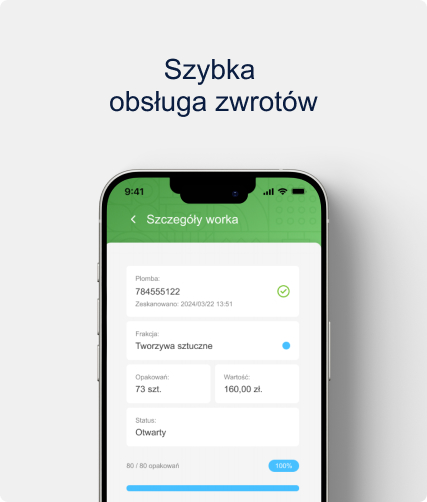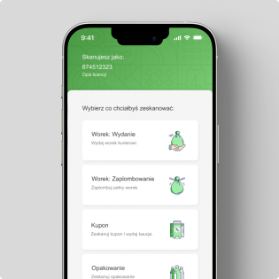 Aplikacja umożliwia sprawne zarządzanie procesem przyjmowania opakowań kaucyjnych i wydawania potwierdzeń.